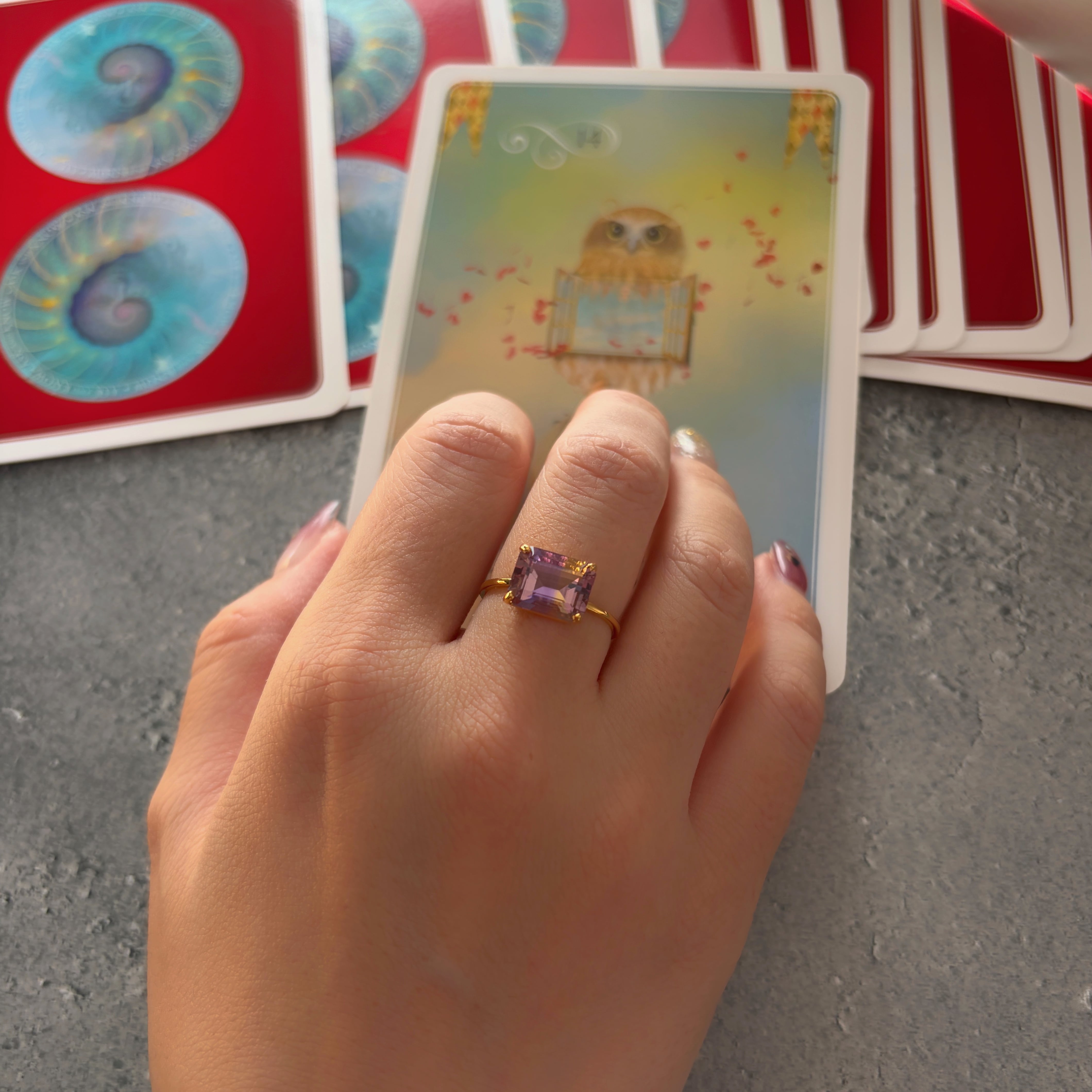 穏やかな色合いで、神秘的な美しさを放つアメトリン。このリングは、アメジストとシトリンが絶妙に融合したバイカラーが魅力で、見る人の心を惹きつける特別な存在感を持っています。濃厚な紫と黄色が煌めくアメトリンを厳選しました。