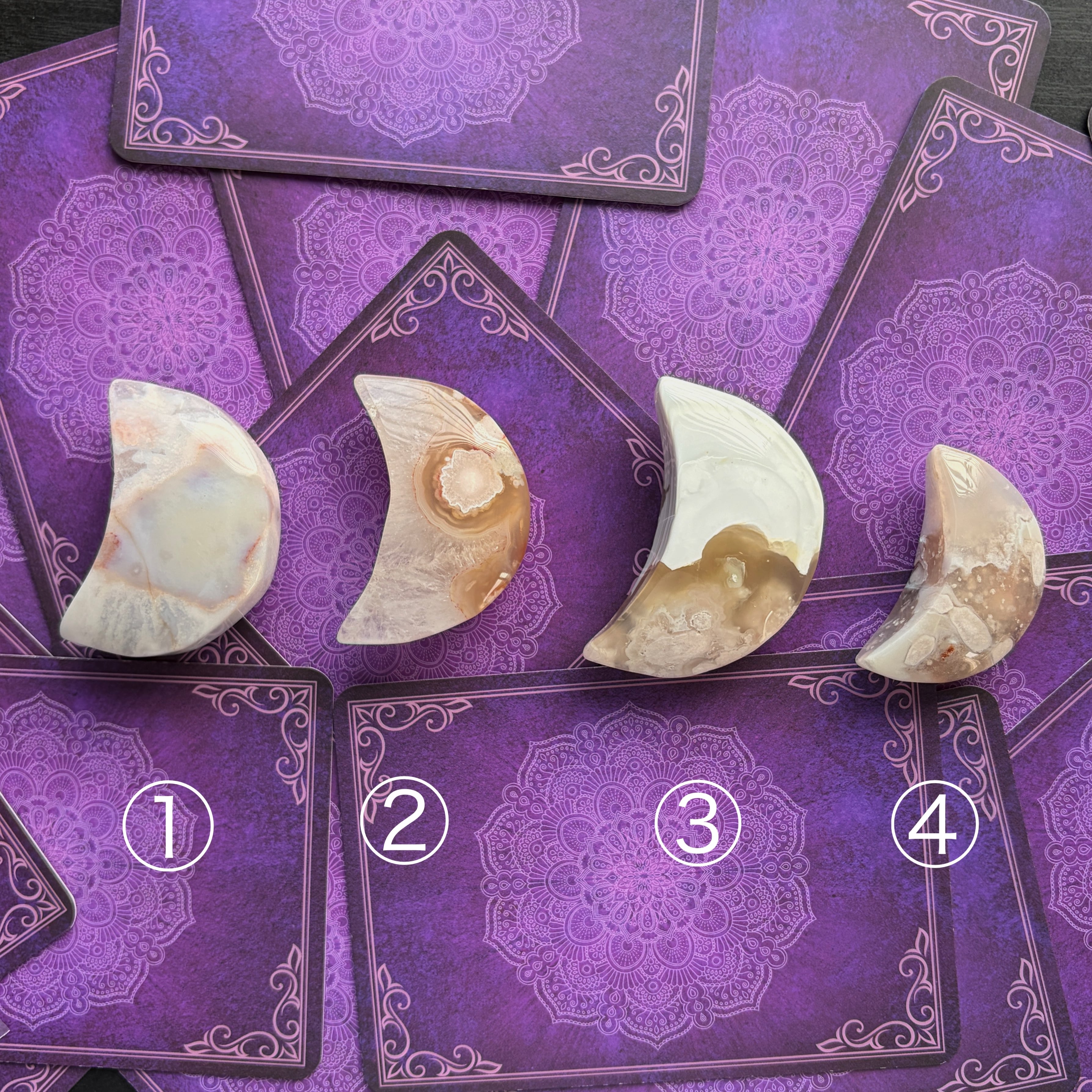 車の運転中・仕事中・カードリーディング中・電車内や人込みの中・日々のアファメーションやジャーナリング中・瞑想中・心が落ち着かない場合・インテリアとして・空間やお財布の浄化